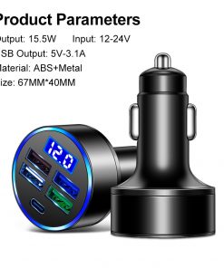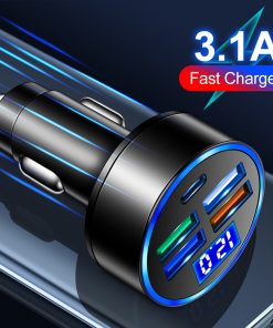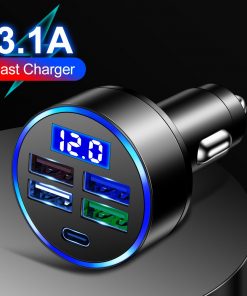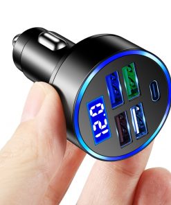 5 Ports 15.5W USB Type-C Car Charger LED Digital Display Auto Charging Plug Adapter for Mobile Phone with Voltage Detection