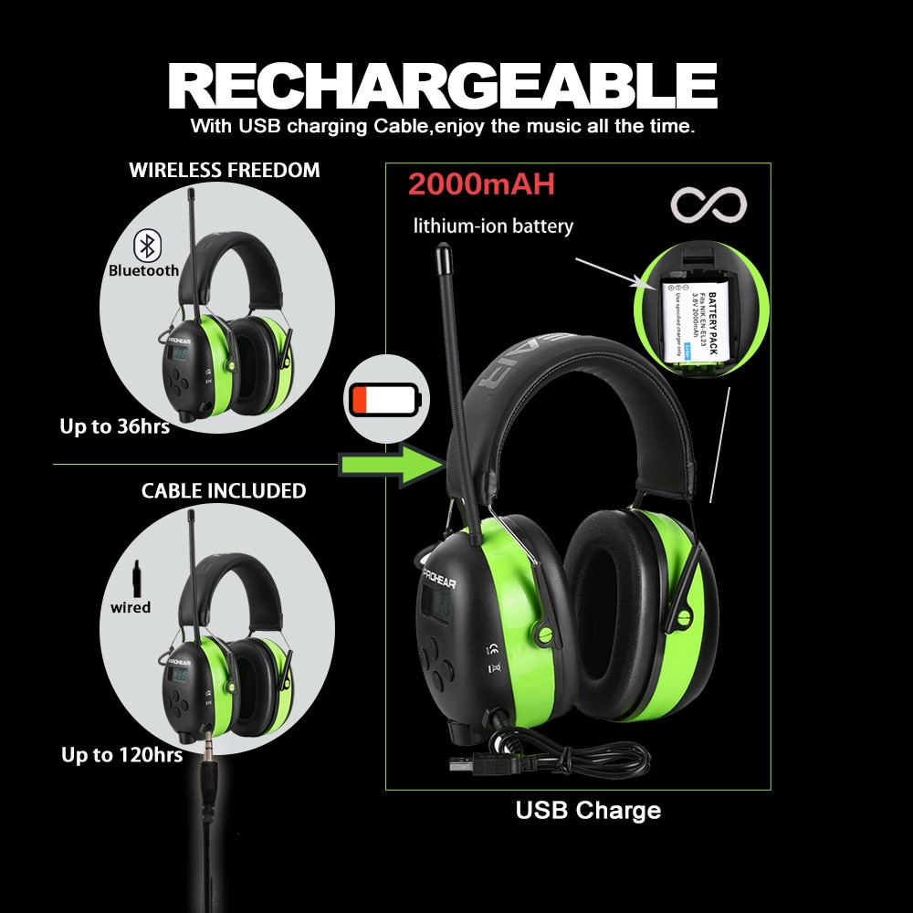 - Features 3: bluetooth AM/FM hearing protector