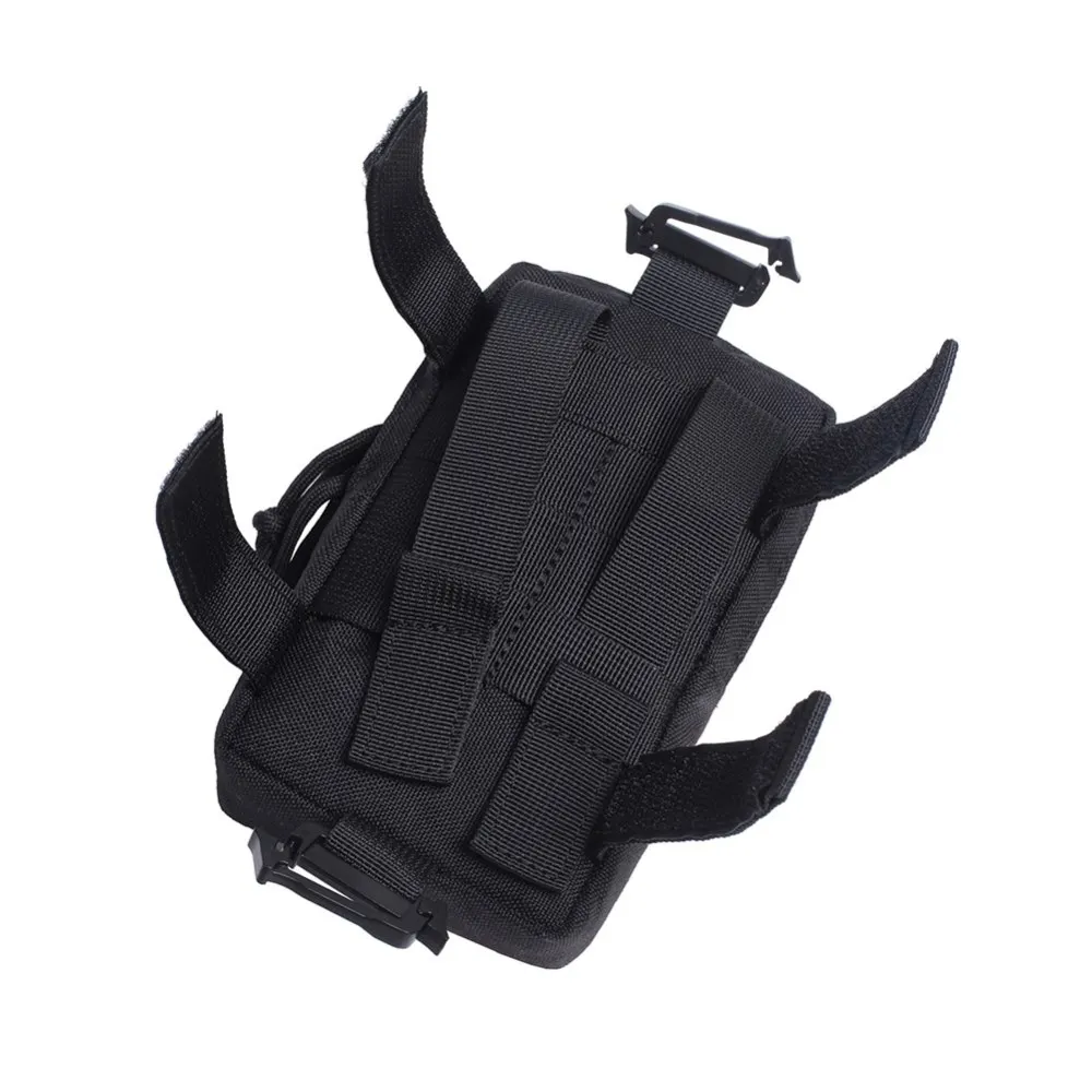 4: Molle webbing design on the back. Can be strapped to work belts, backpacks and other molle gear as well as arms and waist.